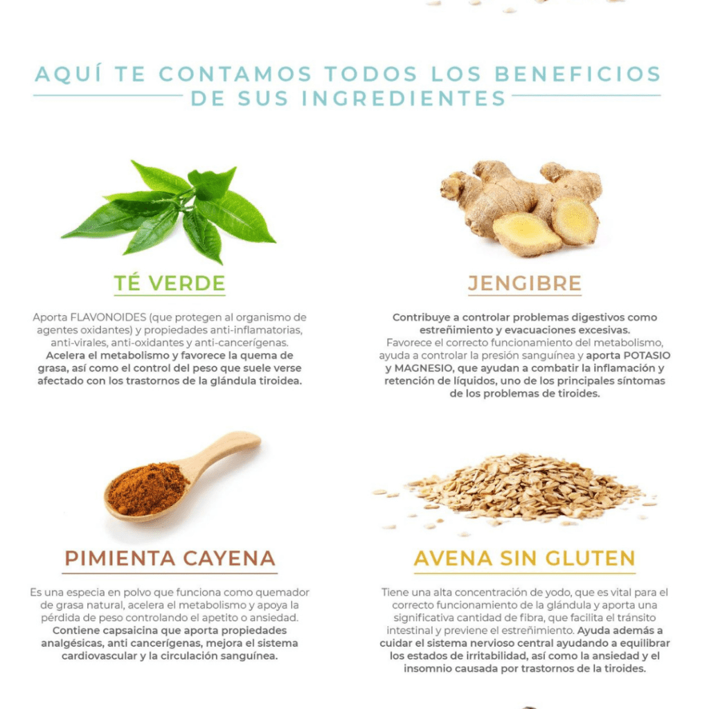 ➖Te ayuda a perder peso ya que contiene té verde, pimienta cayena , jengibre y canela.
